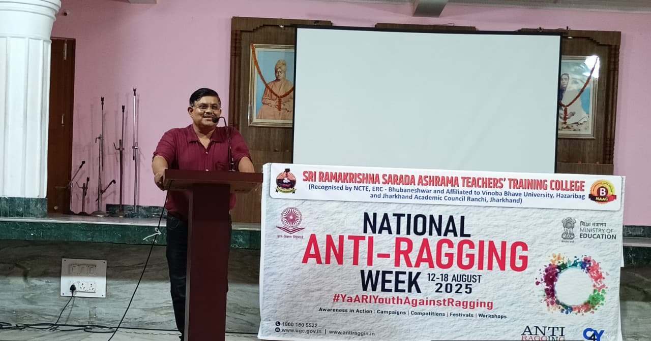 The urge for establishing an ideal, value-based institution with untiring zeal, in a nutshell is the genesis of our Institution - Sri Ramakrishna Sarada Ashrama, Hazaribag, the apex body of the SRSA-TTC. Our association with it since its inception in 1992 and even earlier, is indeed a rare privilege. This institution is destined to reach great heights by the spirit of hard work and dedication of its founder President Swami Tapananda Maharaj, who received blessings of Swami Vivekananda and his own Gurudev Swami Himangshu Maharaj, a direct disciple of Holy mother Sarada Devi. Swami Tapananda's endavavour of social upliftment and spiritual enlightenment especially of neglected, uneducated masses provides the impetus of service. Our Ashrama is the symbol of our manifold service rendered to needy people of this place and other adjoining areas. To our modest but sincere efforts to serve the cause of socially backward, along with the rest, a new feather has been added through B.Ed. facility made available from the session 2012-13 in the spiritual environment of Ashrama Premises. This facility of educational need has received tremendous impetus among the untrained graduates of Hazaribag as a whole. I think B.Ed. course provides the backbone of teaching environment. So very important in the overall improvement of mental and spiritual up- liftment is visualised by our Hon’ble President, Swami Tapananda jee Maharaj from the inception of the School in 1992. Now that dream has been realised.